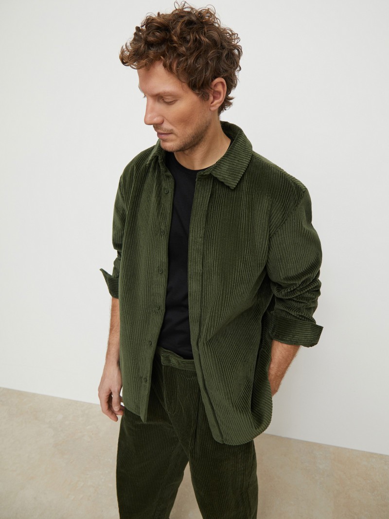 Рубашка из вельвета. Бархатная фактура, плотная ткань и карманы — эту рубашку легко стилизовать с футболками и водолазками вместо традиционного пиджака. - Прямая, стандартной длины - Супатная застежка на пуговицы, карманы по бокам - Французский вельвет на основе хлопка — дышащий, приятный к коже и согревающий материал - У ткани выраженный мягкий ворс, она не просвечивает, мало истирается и долго служит - Переработанный полиэстер — вторичное сырье, помогает уменьшить количество пластика на планете Сделано в Беларуси.