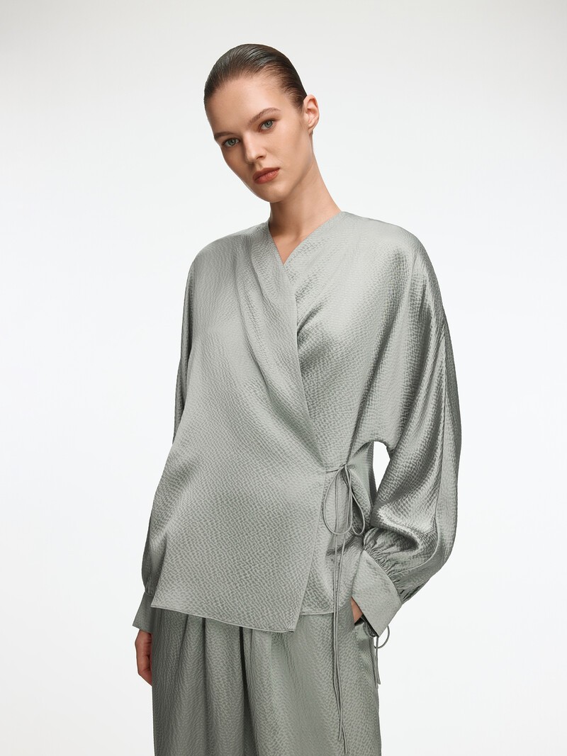 1. Шелк с жаккардовым переплетением: особая техника создает рельефный рисунок, который придает ткани плотность и эффект мерцания 2. 100% шелк Mulberry плотностью 19 momme — тонкий и прочный. Благодаря переплетению на нем не остаются разводы после машинной стирки (в щадящем режиме) 3. Комфортный силуэт — блузка свободно облегает и очерчивает фигуру мягкими плавными линиями. С помощью завязок можно отрегулировать ширину Вернуть или обменять изделие можно, только если все ярлыки на месте