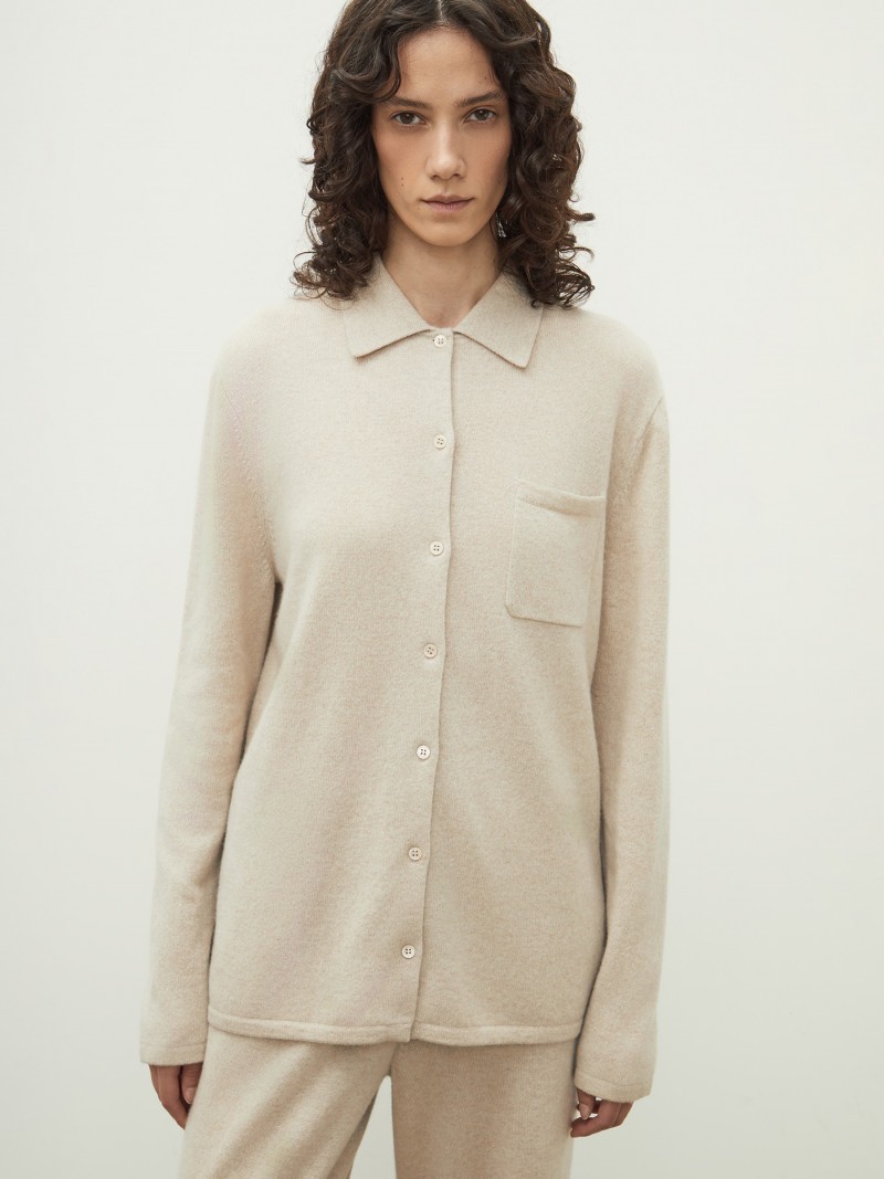 Свободная прямая рубашка из 100% кашемира, нежного и невесомого — уютная женственная альтернатива блузкам и джемперам. Накладной кармашек на груди и застежка на пуговицы из перламутра придают ей дополнительное изящество. Этот тонкий, но плотный трикотаж мы выбрали за особые качества: он мягко согревает, меньше пиллингуется и хорошо держит форму. Комбинируйте с брюками из нашей коллекции. У этого изделия средняя пиллингуемость. При правильном уходе первые пилли могут появиться на нем спустя 4-7 носок. При трении о шероховатые поверхности пушистая нить может скатываться. Для удаления пиллей пользуйтесь специальной машинкой. Сделано в Китае.