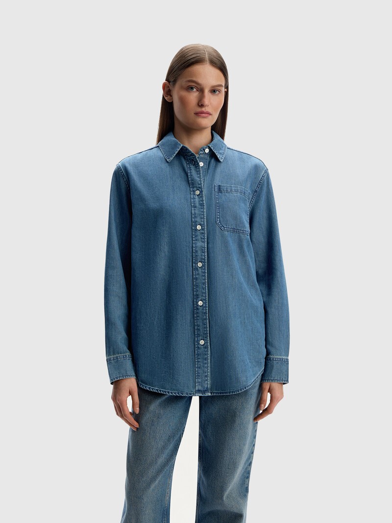 Классическая рубашка из тонкого шелковистого денима, состав которого разработан в Италии. Благодаря сочетанию лиоцелла и хлопка материал плотностью 7,2 Oz получился мягким и довольно пластичным — то, что нужно для лаконичной модели на каждый день. Застегивается на пуговицы из перламутра. Лиоцелл — нежное на ощупь волокно из древесины эвкалипта, современная и экологичная альтернатива вискозе. Во время производства не используются токсичные вещества, поэтому вредные выбросы не загрязняют атмосферу. Сделано в Китае.