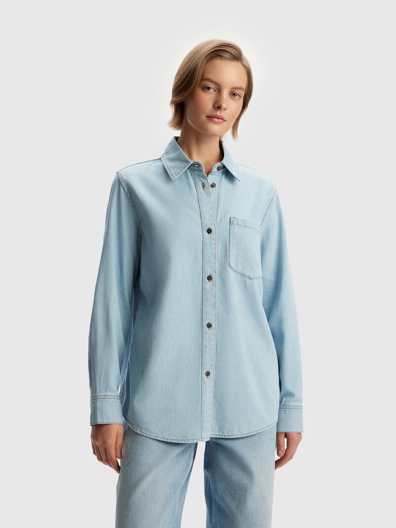 Классическая рубашка из тонкого шелковистого денима. Благодаря сочетанию лиоцелла и хлопка материал получился мягким и довольно пластичным — то, что нужно для лаконичной модели на каждый день. Застегивается на роговые пуговицы. Лиоцелл — нежное на ощупь волокно из древесины эвкалипта, современная и экологичная альтернатива вискозе. Во время производства не используются токсичные вещества, поэтому вредные выбросы не загрязняют атмосферу.
