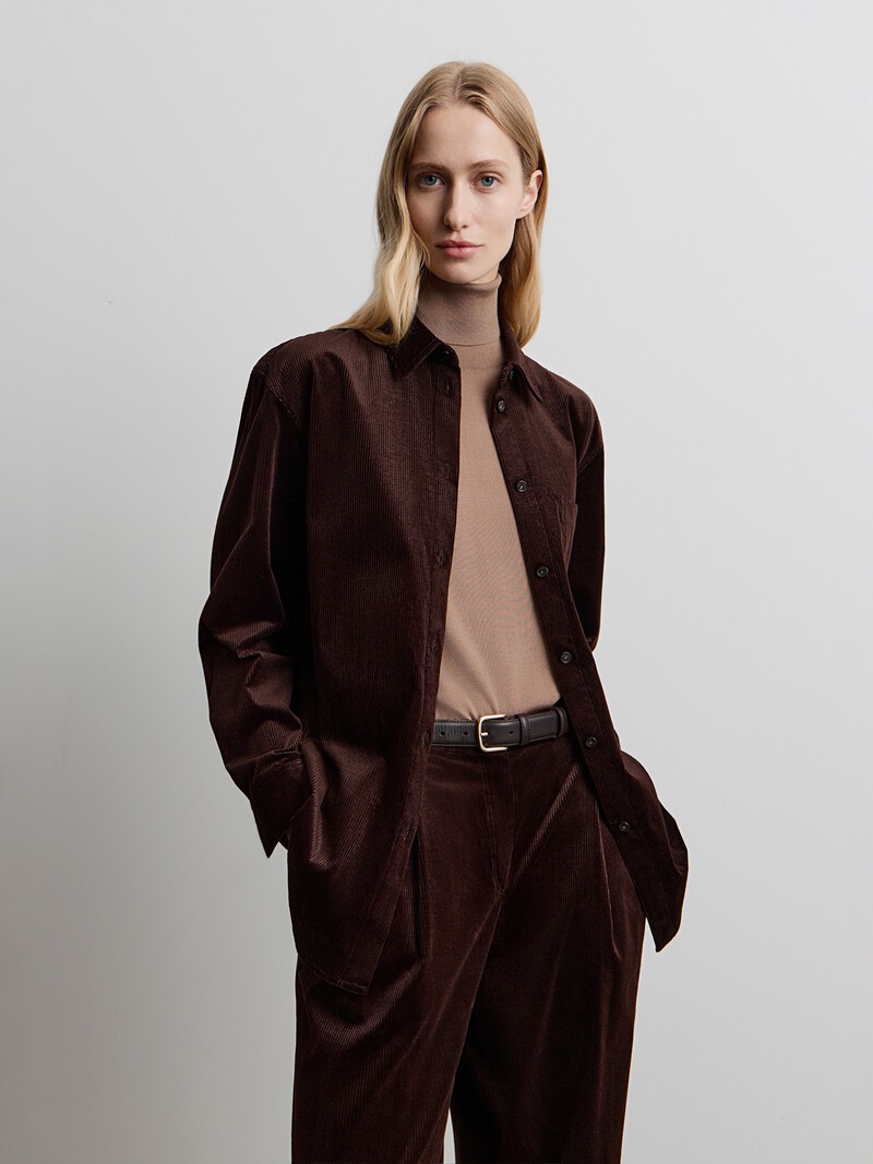 Рубашка из мягкого вельвета поможет создать комфортный образ в прохладные дни. Мягкий и легкий вельвет с деликатным рубчиком, чуть мерцающий в складках — эту рубашку приятно носить как второй слой, поэтому мы сделали ее свободной и слегка удлиненной. Сделано в России.