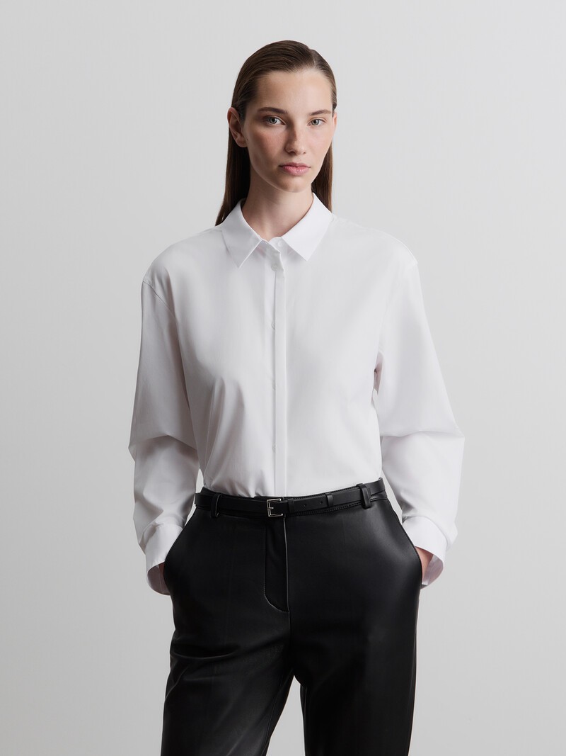 Базовая рубашка, без которой невозможно представить современный гардероб. Ткань для этой модели создана на итальянской фабрике Albini. Тончайшие нити длинноволокнистого хлопка скручены и плотно переплетены — материал получается прочным и с деликатным блеском. Международный сертификат GOTS (Global Organic Textile Standard) — самый строгий стандарт для органических тканей, подтверждает не только экологичность выращивания, но и социальную ответственность производителя, то есть хорошие условия и достойную оплату труда фермеров. Сделано в Турции.