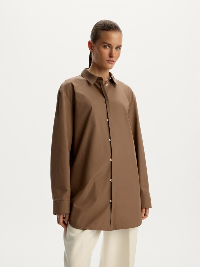 Базовая рубашка, без которой невозможно представить современный гардероб. Ткань для этой модели создана на итальянской фабрике Albini. Тончайшие нити длинноволокнистого хлопка скручены и плотно переплетены — материал получается прочным и с деликатным блеском. Международный сертификат GOTS (Global Organic Textile Standard) — самый строгий стандарт для органических тканей, подтверждает не только экологичность выращивания, но и социальную ответственность производителя, то есть хорошие условия и достойную оплату труда фермеров. Сделано в Турции.