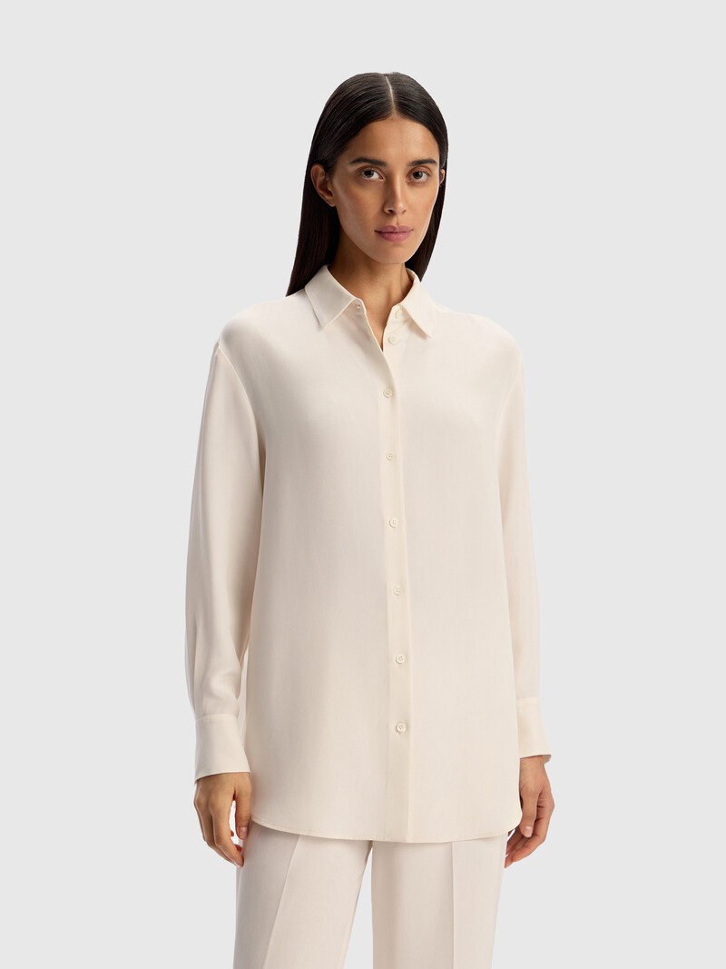 Рубашка из натурального шелка — модель на все времена. Универсальный прямой силуэт, аккуратные манжеты и воротник — ее легко заправлять и можно носить навыпуск благодаря скругленным краям. Для рубашки мы выбрали тутовый шелк с матовой поверхностью, поэтому она будет уместна и в офисе, и на вечеринке. 100% Mulberry шелк — самый ценный вид шелковых волокон. Сотканный из тончайших нитей, этот матовый материал отличается особой прочностью. Сделано в Китае.