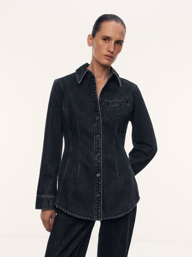 1. Новинка в нашей коллекции — рубашка из денима, которая подчеркивает фигуру 2. Деним плотностью 14 Oz создан из органического хлопка с сертификатом GOTS. Это самый строгий стандарт для органических тканей, который подтверждает не только экологичность, но и социальную ответственность производителя 3. Отлично держит форму — рубашку удобно носить поверх маек и топов 4. Застегивается на кнопки с логотипом 12 STOREEZ