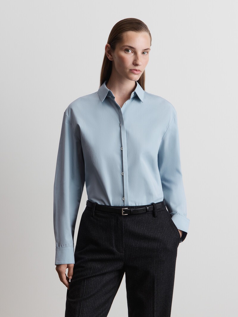 Наш бестселлер — удлиненная модель из хлопка супима: плотное переплетение тончайших нитей придает ткани прочность и деликатный блеск. Прямой силуэт, плотные манжеты, чуть спущенное плечо, кокетка на спине — эта модель создана для комфортных, расслабленных образов. Носите ее полурасстегнутой или в качестве второго слоя. Международный сертификат GOTS (Global Organic Textile Standard) — самый строгий стандарт для органических тканей, подтверждает не только экологичность выращивания, но и социальную ответственность производителя, то есть хорошие условия и достойную оплату труда фермеров. Сделано в России.