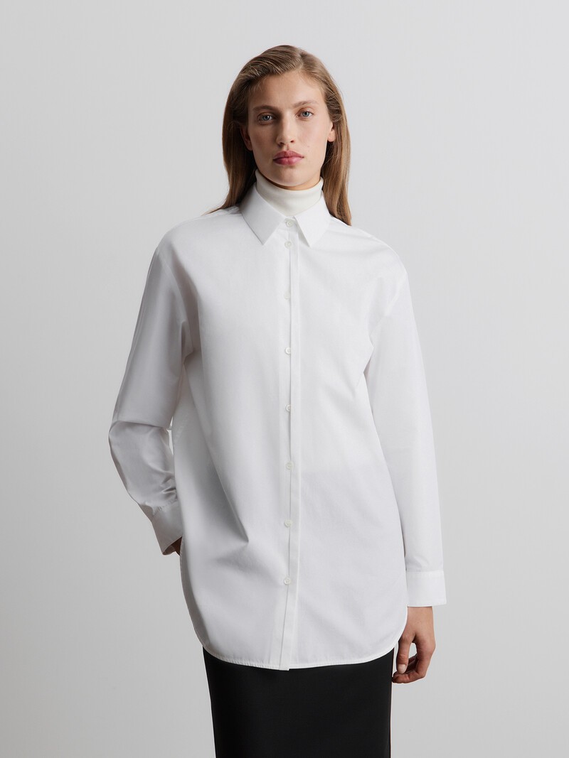 Наш бестселлер — удлиненная модель из хлопка супима: плотное переплетение тончайших нитей придает ткани прочность и деликатный блеск. Прямой силуэт, плотные манжеты, чуть спущенное плечо, кокетка на спине — эта модель создана для комфортных, расслабленных образов. Носите ее полурасстегнутой или в качестве второго слоя. Международный сертификат GOTS (Global Organic Textile Standard) — самый строгий стандарт для органических тканей, подтверждает не только экологичность выращивания, но и социальную ответственность производителя, то есть хорошие условия и достойную оплату труда фермеров. Сделано в России.