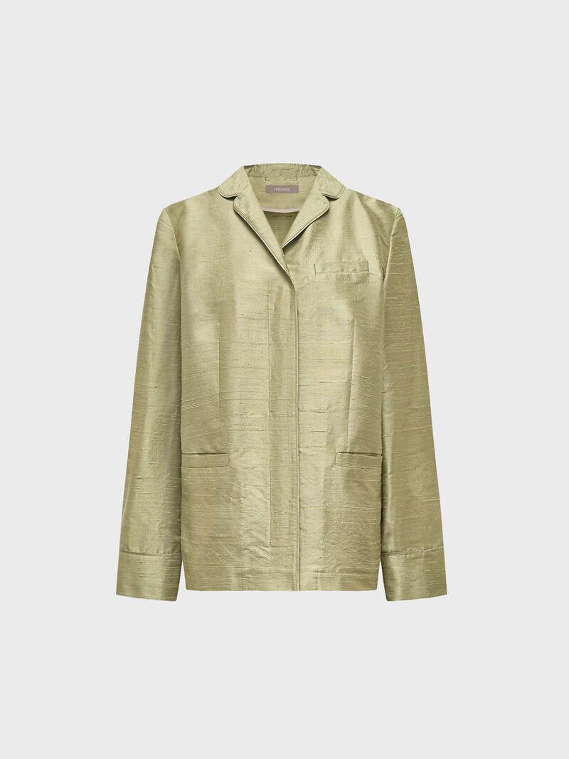 Свободная рубашка, нарядная и отсылающая к пижамному стилю, послужит отличной альтернативой жакету. Мы выбрали для нее плотную и мягкую шелковую тафту, сотканную из нитей двух цветов, с нарочито неровной, натуральной фактурой и мягким переливом цвета. Сочетайте с брюками из нашей коллекции. 100% Mulberry шелк — самый ценный вид шелковых волокон. Такой шелк сияет и переливается при любом освещении, а его нити тоньше, легче и прочнее аналогов Сделано в России.