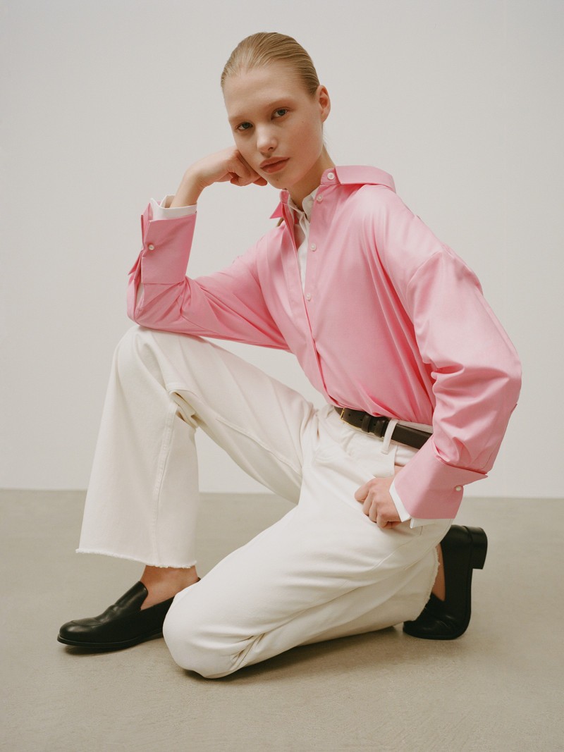 Рубашка из хлопка. Бестселлер 12 STOREEZ, свободная рубашка с высокими манжетами и пуговицами, которые имитируют запонки. Для модели выбран длинноволокнистый хлопок — более гладкий, прочный и мягкий, чем аналоги. Сделано в Гонконге