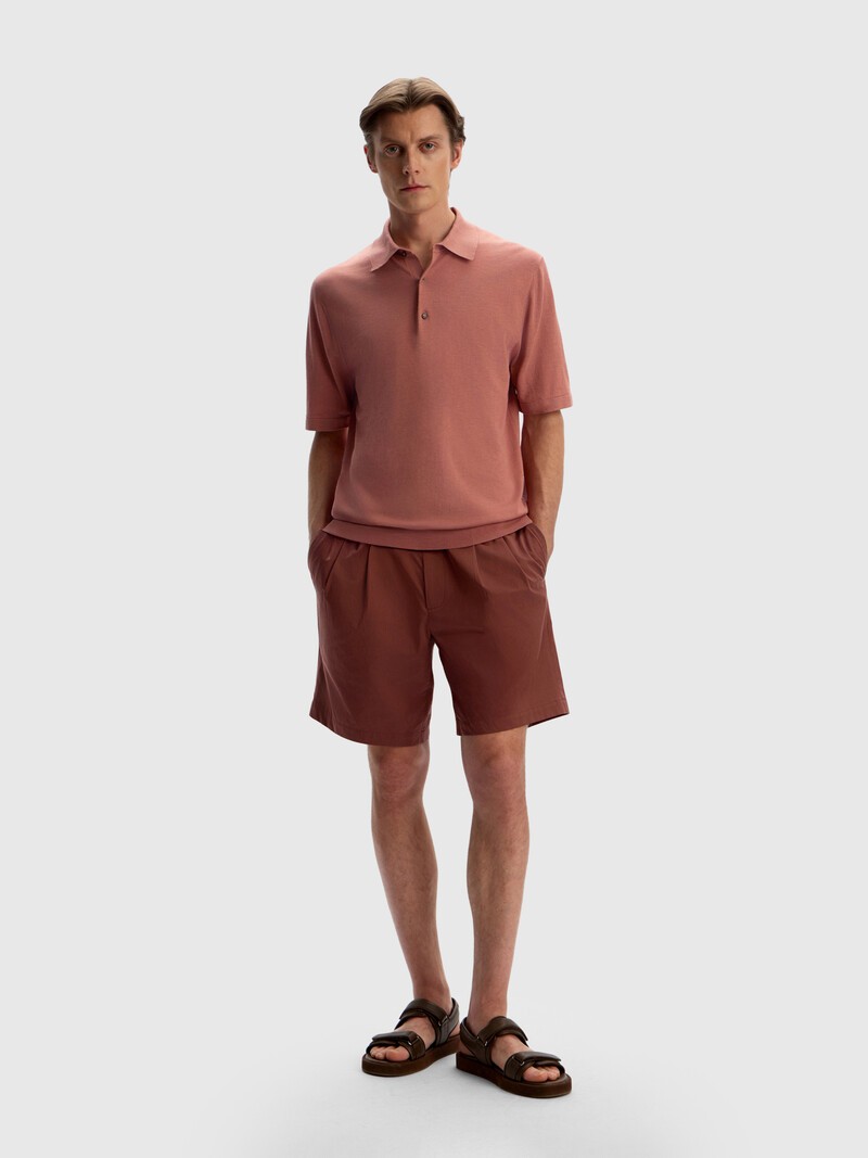 Шорты со складками и стрелками из гладкого и плотного хлопка — незаменимая вещь для лета. Ткань с сатиновым переплетением и легким лоском позволит стилизовать их по-разному: добавьте ремень, чтобы выглядеть более аккуратно, или подчеркните расслабленный образ футболкой с винтажным эффектом. Сделано в Китае.