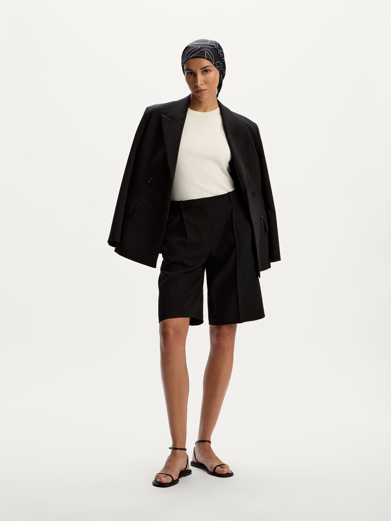 Классические бермуды с комфортной заниженной посадкой и универсальной длиной до колена. Легкий и тонкий креп не блестит и хорошо держит форму. Сочетайте с жилетом и жакетом из нашей коллекции. Сделано в России.
