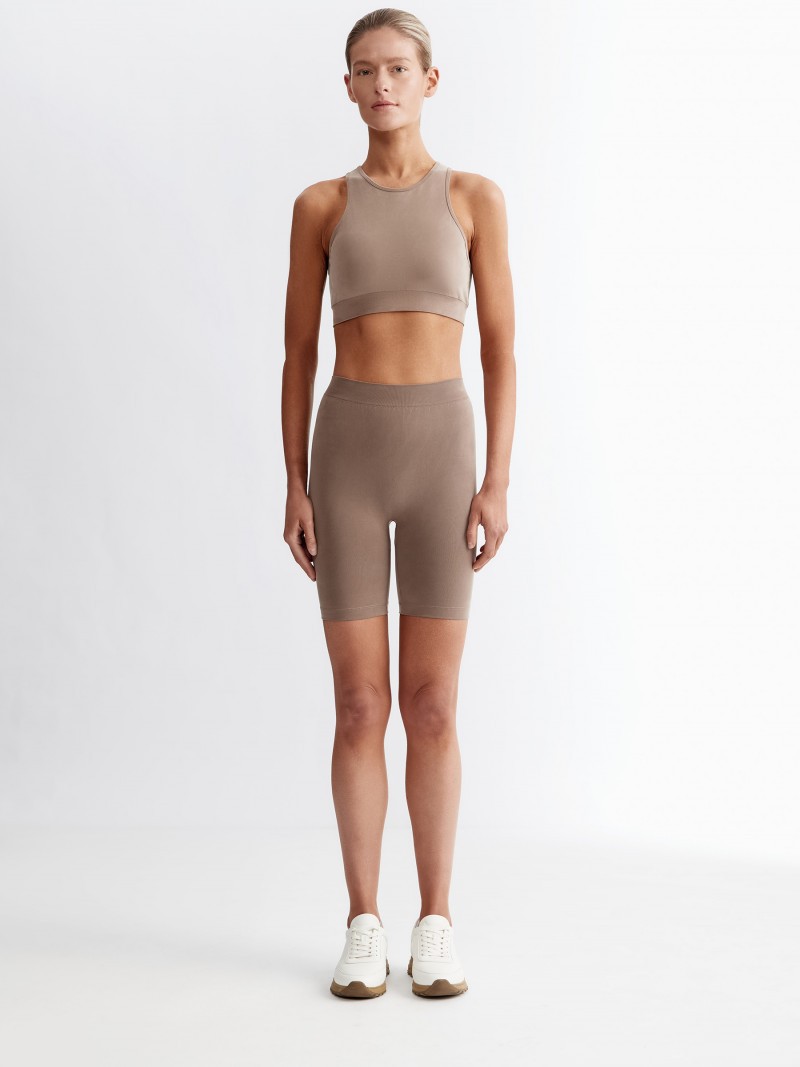 Бесшовные велосипедки из мягкого дышащего трикотажа купро — незаменимая и всегда актуальная база для образов в стиле спорт-шик. Они отлично сочетаются с толстовками, футболками или топами из нашей коллекции благодаря нейтральныму оттенку. Рекомендуем выбирать бесшовное белье. Сделано в Турции.