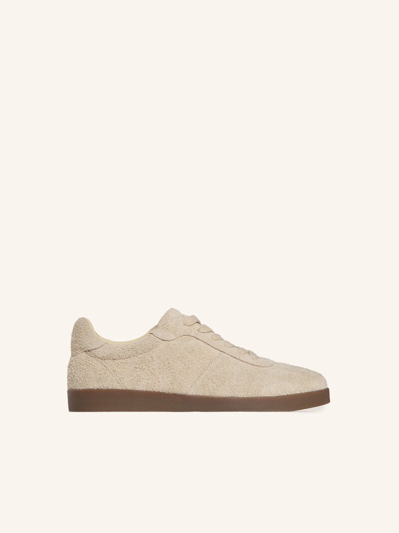 Минималистичные легкие кеды из бархатистой замши, дышащей и долговечной, с резиновой подошвой и шнурками в тон. В таких будет удобно весь день: кожаная стелька с амортизаторами обеспечивает правильную нагрузку на стопу, а мягкий кант предотвращает натирание. На подкладке из текстиля. Вес пары в 42 размере: 0,78 кг