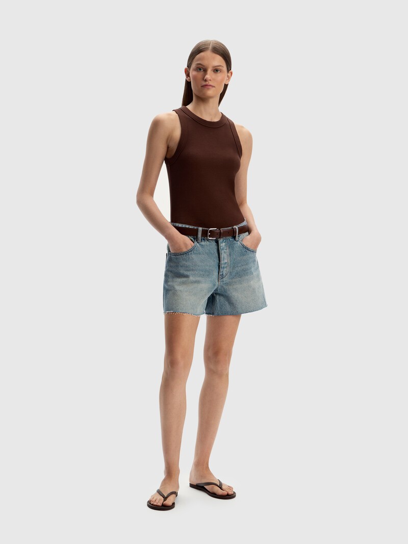 Шорты мини с низкой посадкой и патчем из кожи. Нижний край мы оставили необработанным, чтобы образ получился по-летнему легким и беззаботным. Сшиты из денима плотностью 13 Oz — прочного и комфортного. Застегиваются на болты. Международный стандарт OCS (Organic Content Standard) подтверждает, что хлопок выращен бережным способом, без пестицидов, чтобы сохранить чистоту почвы и воды и исключить вредное влияние на здоровье фермеров.
