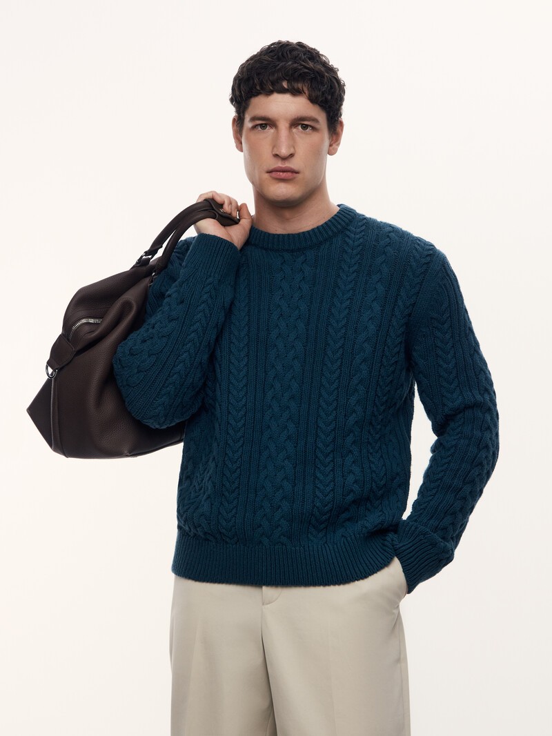 1. Легкий и дышащий: джемпер связан из воздушной хлопковой нити объемным переплетением, которое напоминает ручную работу 2. Сочетание кос и жгутов делает образ более выразительным 3. Базовый силуэт без лишнего объема — легко интегрировать в гардероб