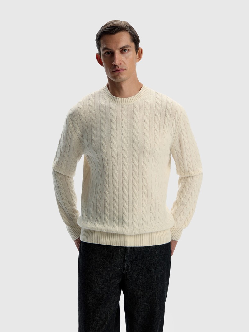 Базовый джемпер с рельефным узором — вертикальными косами. Свободный силуэт, небольшой круглый вырез, чуть спущенное плечо — такой можно надеть на рубашку или футболку. Связан в две нити из тонкого невесомого кашемира эталонного качества, собранного во Внутренней Монголии. Трикотаж получается воздушным, нежным и одновременно плотным и хорошо держит форму. При трении о шероховатые поверхности пушинки кашемира могут скатываться. Чтобы удалить пилли, пользуйтесь специальной машинкой. Сделано в Китае.