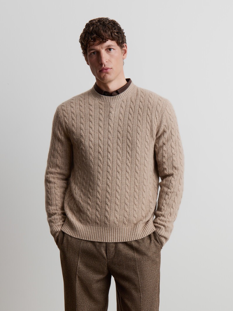 Нежный кашемировый джемпер, связанный косами. Благодаря свободному силуэту его комфортно носить поверх рубашки или футболки. Связан в две нити из тонкого невесомого кашемира эталонного качества, собранного во Внутренней Монголии — трикотаж из такой пряжи получается воздушным, теплым и хорошо держит форму за счет переплетения. При трении о шероховатые поверхности пушинки кашемира могут скатываться. Чтобы удалить пилли, пользуйтесь специальной машинкой.
