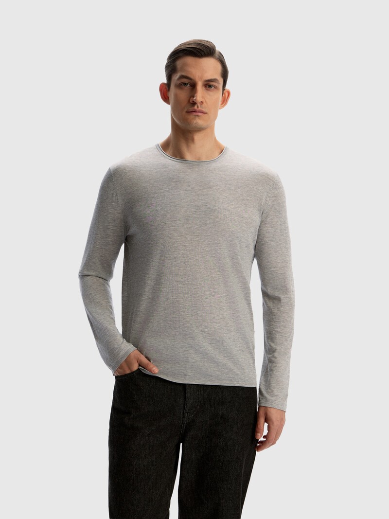 Невесомый лонгслив для расслабленных образов в отпуске и отдыха в городе. Мы выбрали для него тончайшую нить из шелка и хлопка, поэтому трикотаж приятно скользит по коже и немного просвечивает. Горловина обработана руликом, а лаконичный центральный шов проходит по спинке. Сделано в Китае.