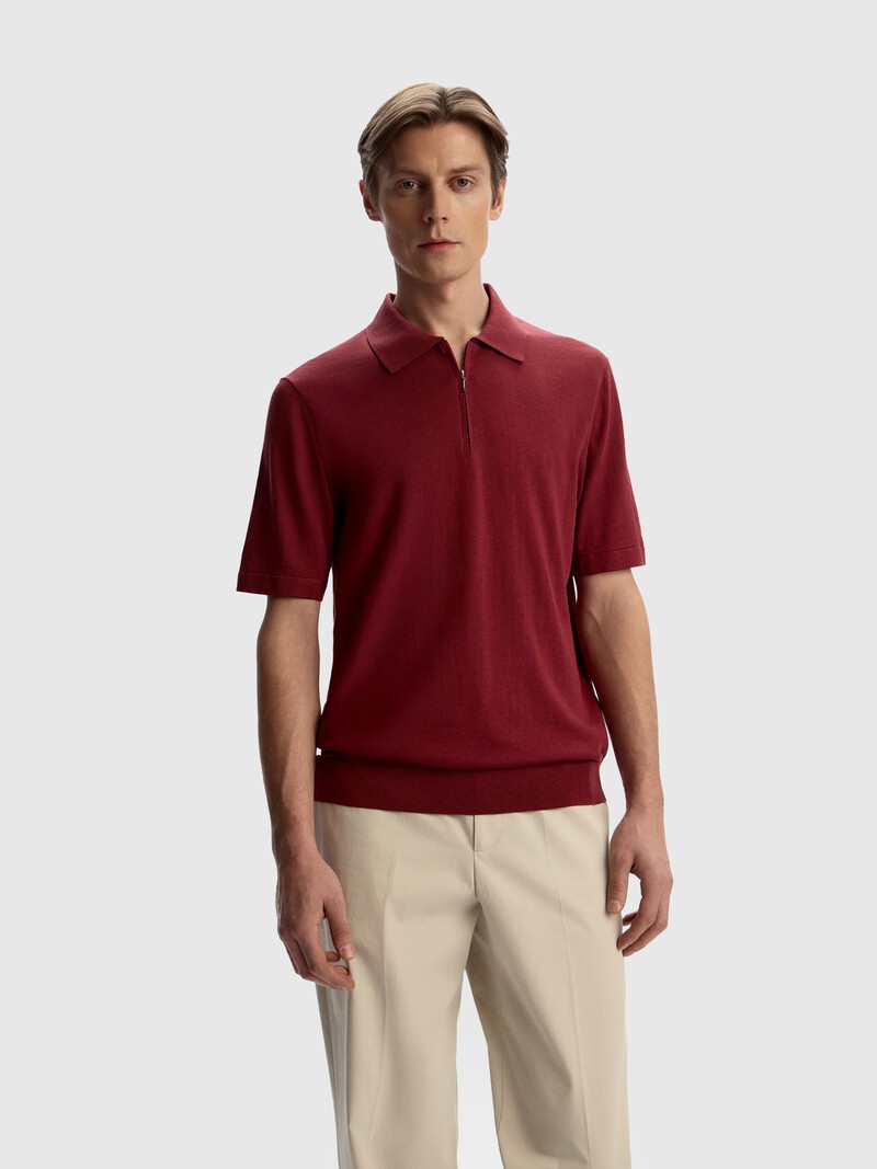 Джемпер-поло с мягким воротником легко впишется в базовый летний гардероб. Легкий, нежный и полностью натуральный трикотаж с деликатным лоском хорошо дышит и комфортно прилегает к телу. Нижний край связан резинкой, чтобы джемпер можно было присборить на бедрах. Застегивается на тонкую молнию с металлическим пуллером. Сделано в Китае.