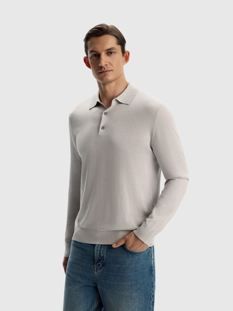 Классический джемпер-поло, который приятно носить в любое время года. Универсальная длина и резинки, с помощью которых можно добиться идеальной посадки, застежка на пуговицы из натурального перламутра. Джемпер связан из тонкой, гладкой и мягкой пряжи, в составе которой дышащий хлопок и деликатно мерцающий шелк. Сделано в Китае.