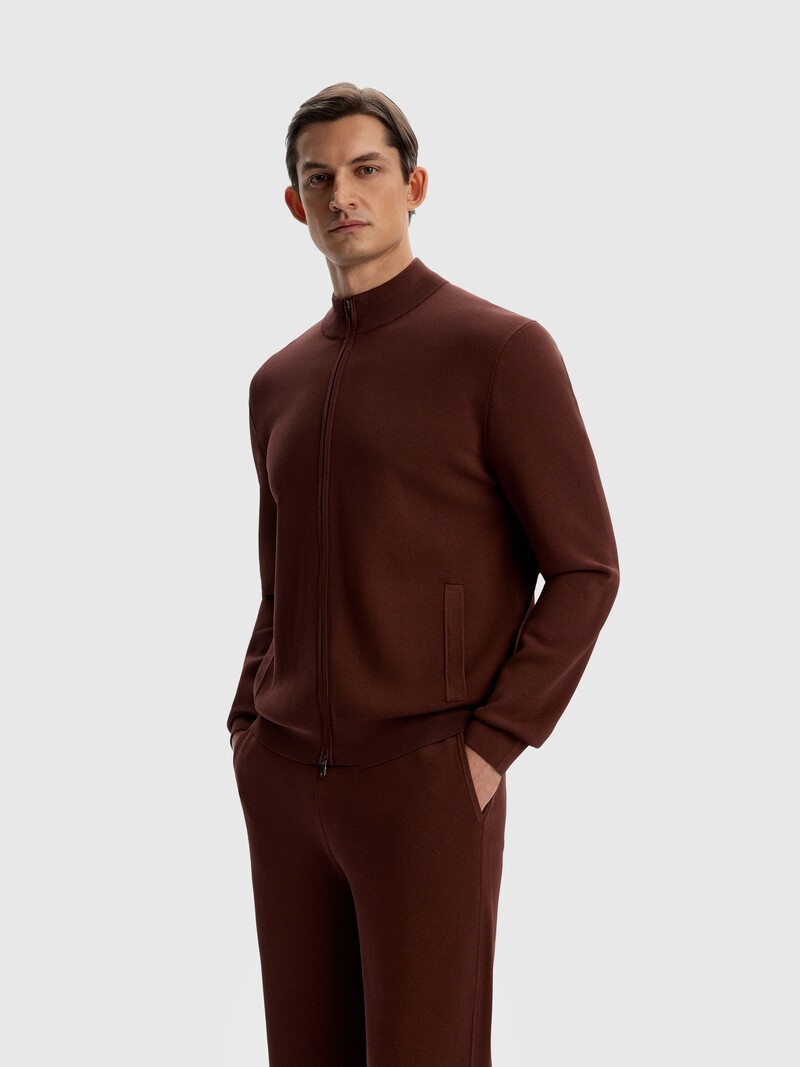 Вязаный кардиган на молнии — альтернатива базовой толстовке. Высокий воротник и боковые карманы, молния с двумя замками — эти детали делают кардиган практичным и универсальным, а гладкий и плотный трикотаж на основе вискозы хорошо дышит, не перегревает тело и сохраняет форму. Комбинируйте с брюками из нашей коллекции. Сделано в Китае.
