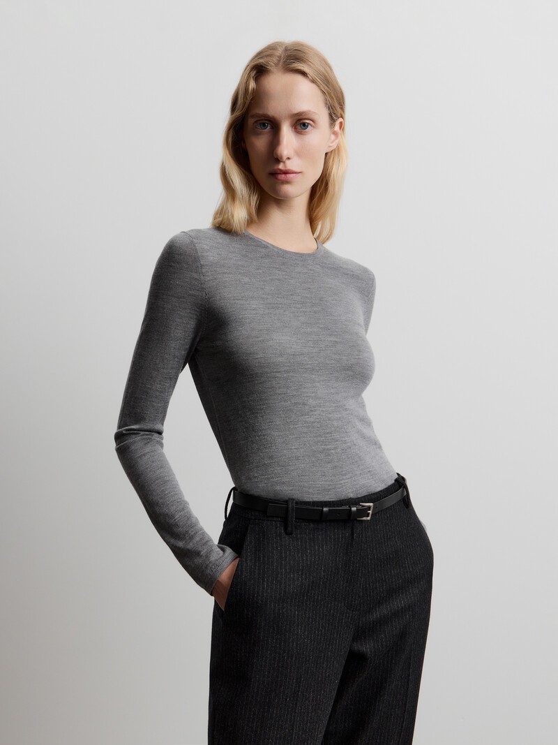 Для этого лонгслива мы выбрали нежную тонкую пряжу, в которой сочетаются шерсть мериноса, шелк и кашемир. Такая пряжа не часто встречается в коллекциях брендов из-за высокой стоимости — одежда из нее окутывает тело невесомым теплом в период остывающего лета и легко сочетается с другими вещами зимой. Полупрозрачный трикотаж с деликатным блеском связан крошечными петлями и может слегка просвечивать. Пожалуйста, обращайтесь с изделием аккуратно — аксессуары и грубые предметы могут оставить зацепки или повредить нить. У этого изделия низкая пиллингуемость. При правильном уходе первые пилли могут появиться на нем в среднем через 10 носок. Сделано в Китае.