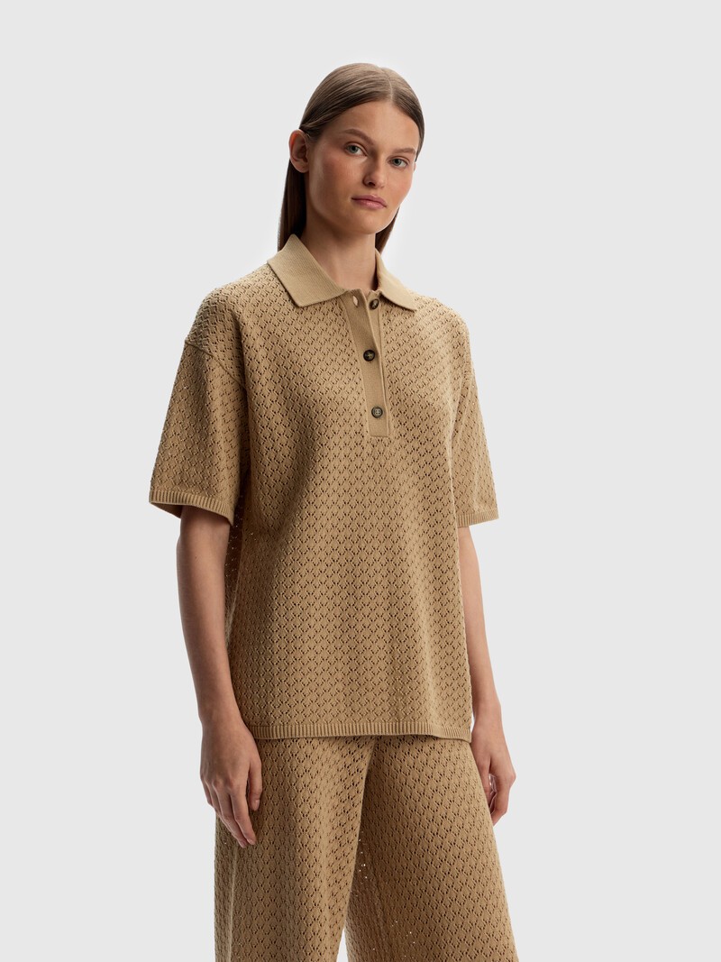 Аккуратное свободное поло из легкого хлопка — для дней, наполненных солнцем. Тонкий, слегка прозрачный трикотаж с мелким ажурным рисунком не мнется и отлично дышит — а значит, не раз выручит в летние дни. Для этого изделия мы выбрали трикотаж с ажурным переплетением. Из-за своей воздушности, трикотаж может вытягиваться, особенно во влажную погоду, но легко восстанавливает свои размеры после стирки и утюжки. Сделано в Китае.