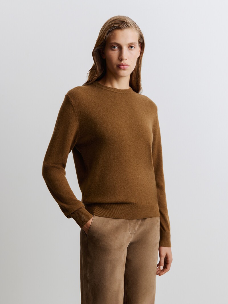 Лаконичный джемпер из кашемира — любимая модель покупательниц — сочетается с любым низом, в том числе с брюками из нашей коллекции. В этом году мы выбрали более легкую и гладкую пряжу, чтобы изделие сохраняло форму еще дольше. У этого изделия средняя пиллингуемость. При правильном уходе первые пилли могут появиться на нем спустя 4-7 носок. При необходимости удаляйте пилли специальной машинкой.