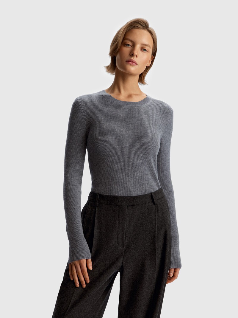 Комфортный базовый джемпер — классический круглый вырез, длинный узкий рукав, универсальный оттенок. Он практически не ощущается на теле, мягко облегает силуэт и не теряет форму со временем. Связан в одну нить из 100% шерсти мериноса, нежной и совсем не колкой. Такую модель можно использовать как первый слой под жакеты или просторные футболки или носить самостоятельно — с брюками, джинсами или юбками. Пожалуйста, обращайтесь с джемпером бережно: острые предметы и аксессуары могут оставить на тонком трикотаже зацепки или повредить нить. У этого изделия низкая пиллингуемость. При правильном уходе первые пилли могут появиться на нем в среднем через 10 носок.