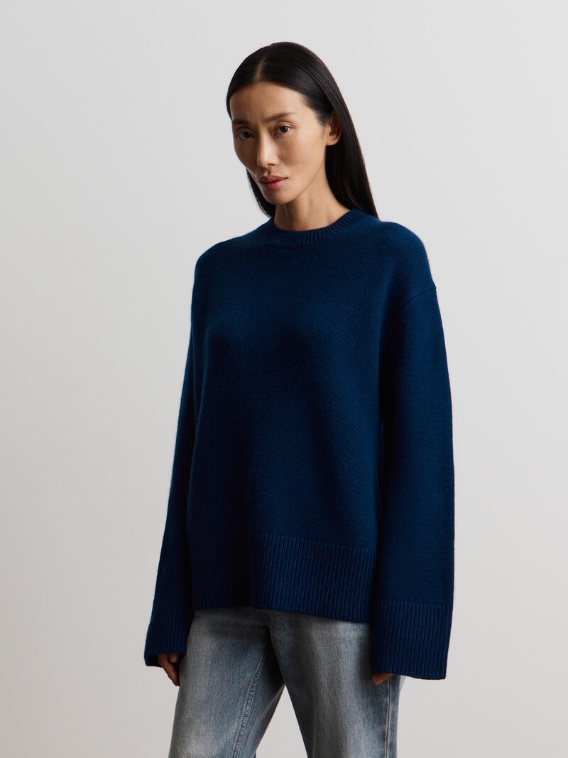 Новая версия нашего джемпера-бестселлера — в этом сезоне мы связали его из пряжи, которая на две трети состоит из шерсти австралийского мериноса и на треть — из кашемира. Как и прежде, джемпер связан в четыре нити крупными петлями, поэтому получается плотным, мягким и очень теплым. При трении о шероховатые поверхности пушинки кашемира могут скатываться. При правильном уходе первые пилли могут появится на изделии спустя 4-7 носок. Чтобы удалить пилли, пользуйтесь специальной машинкой.
