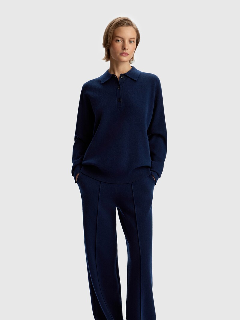 Базовый джемпер с воротником поло — универсальная модель на каждый день. Мы выбрали для джемпера мягкую тонкую пряжу из мериносовой шерсти с добавлением хлопка, согревающую и дышащую. Можно составить комплект с брюками из нашей коллекции. У этого изделия низкая пиллингуемость. При правильном уходе первые пилли могут появиться на нем в среднем через 10 носок.