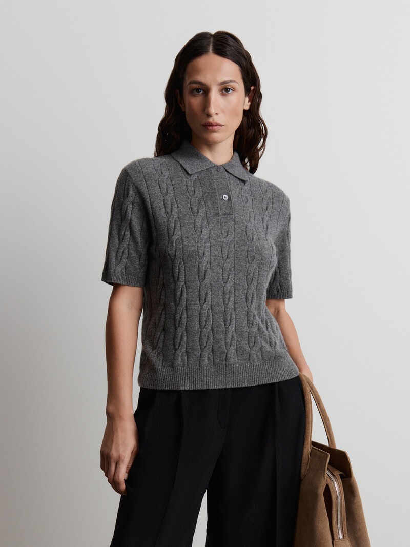 Невесомое поло из кашемира. Прямой силуэт, классическая длина, базовые оттенки и переплетение уютными мелкими косичками помогут вписать его в любой гардероб. Благодаря короткому рукаву поло комфортно носить под жакет — и чувствовать нежность пластичного мягкого трикотажа в прохладные дни. При трении о шероховатые поверхности пушинки кашемира могут скатываться. При правильном уходе первые пилли могут появится на изделии спустя 4-7 носок. Чтобы удалить пилли, пользуйтесь специальной машинкой. Сделано в Китае.