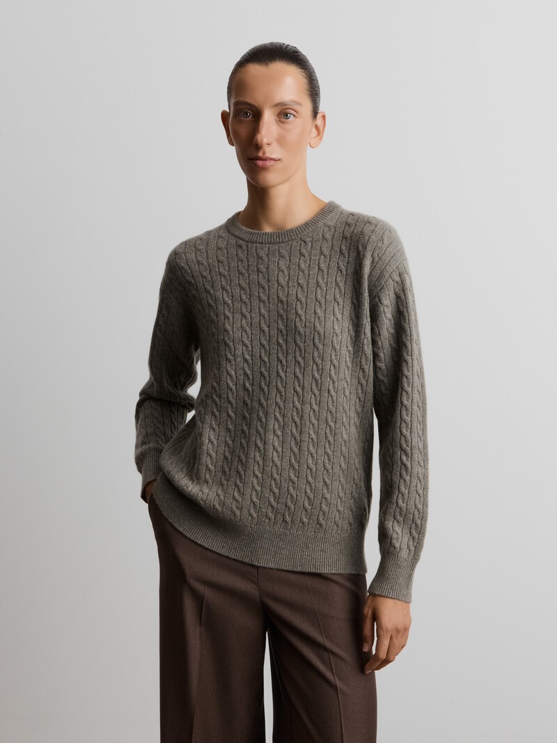 Этот свободный универсальный джемпер с деликатным классическим узором и чуть спущенным плечом способен сделать уютнее любой образ. Мы связали его в две нити из 100% кашемира, нежного, легкого и пушистого. Сочетайте с джинсами, юбками или трикотажными брюками. У этого изделия средняя пиллингуемость. При правильном уходе первые пилли могут появиться на нем спустя 4-7 носок. При трении о шероховатые поверхности нить может скатываться — для удаления пиллей пользуйтесь специальной машинкой.
