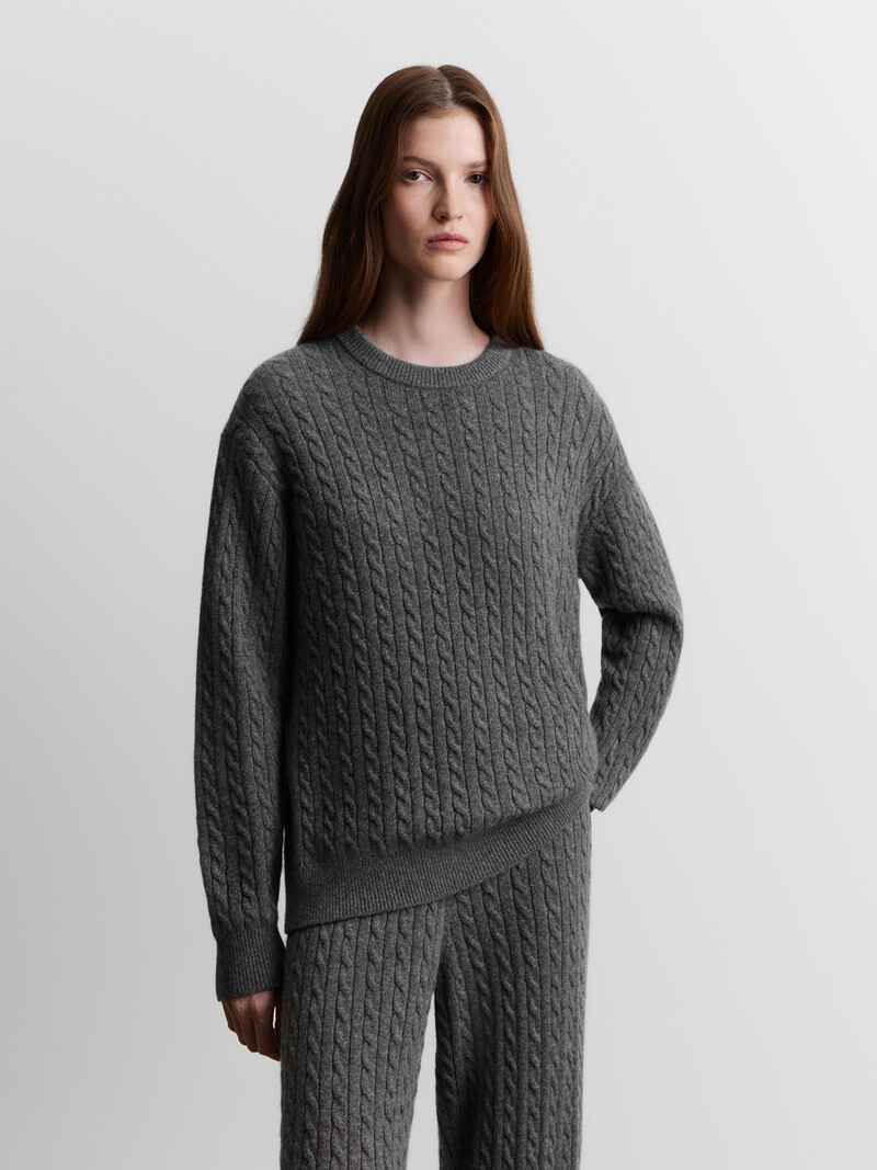 Джемпер, который сделает любой образ уютнее — он связан косами из тонкой и легкой нити, мягко обволакивает и согревает. Пряжа создана из пуха кашмирских коз, обитающих во Внутренней Монголии — кашемир из этого региона превосходит аналоги по чистоте, нежности и теплоте. При трении о шероховатые поверхности пушинки кашемира могут скатываться. При правильном уходе первые пилли могут появится на изделии спустя 4-7 носок. Чтобы удалить пилли, пользуйтесь специальной машинкой. Сделано в Китае.
