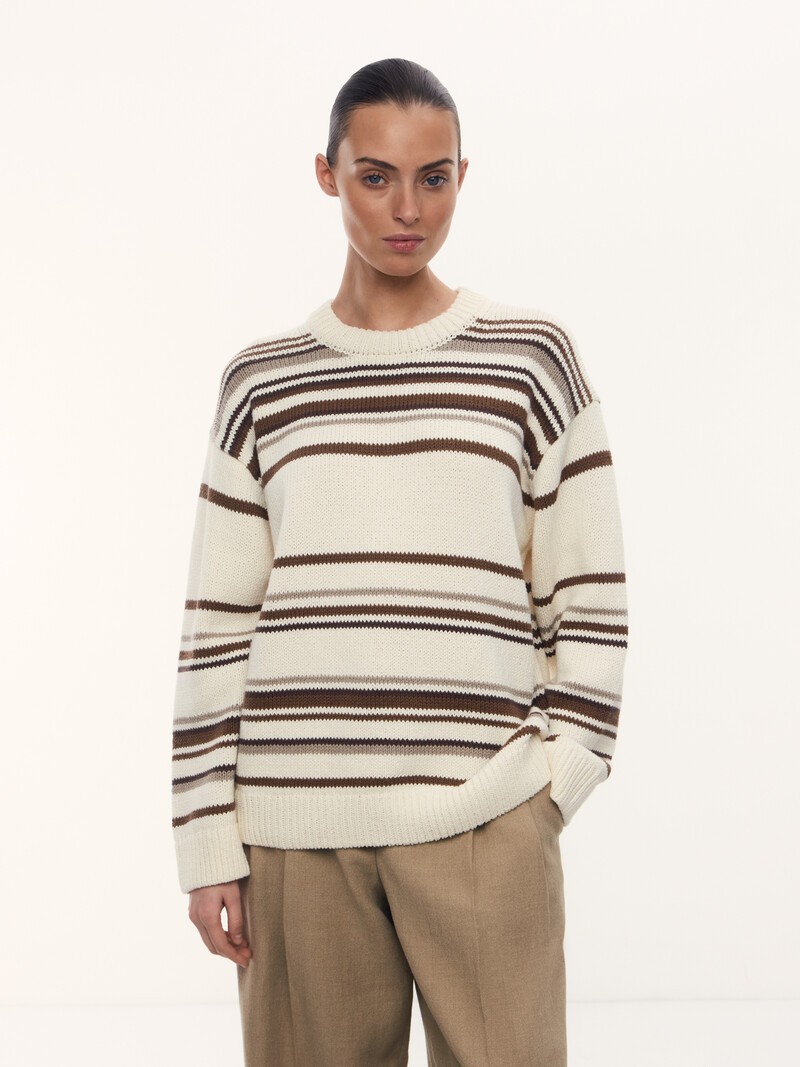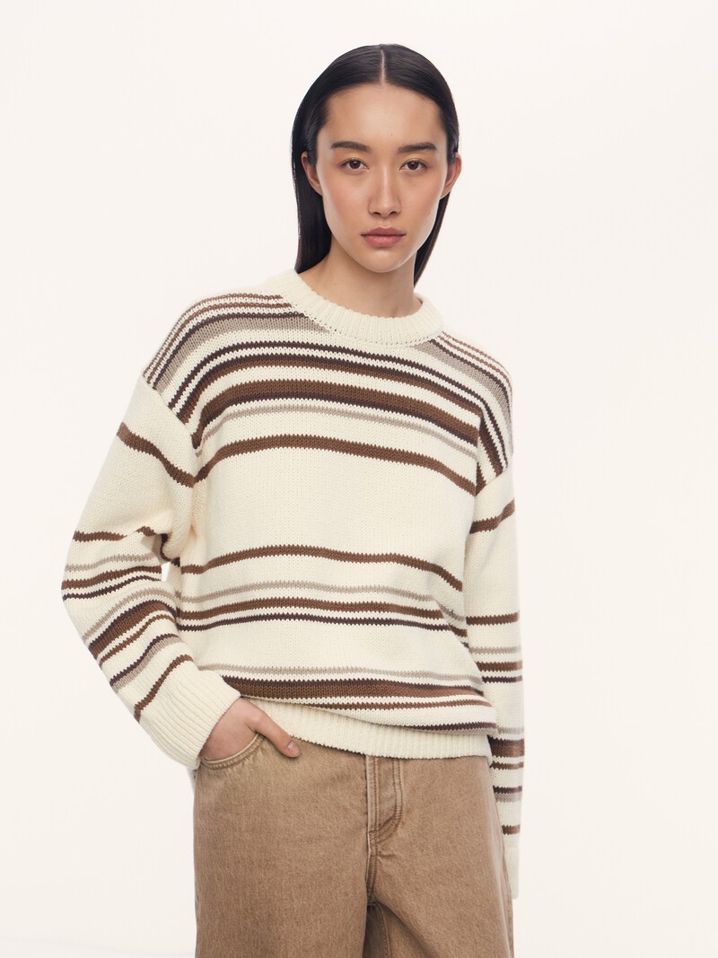 1. Легкий и дышащий: воздушная хлопковая нить создает эффект ручного вязания 2. Больше вариантов сочетаний с изделиями из вашего гардероба благодаря контрастным полоскам