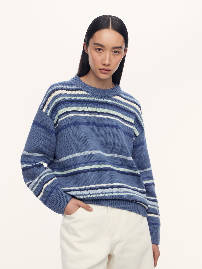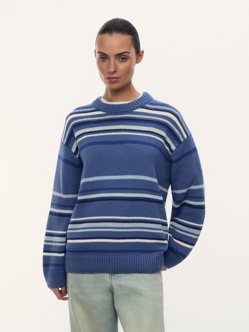 1. Легкий и дышащий: воздушная хлопковая нить создает эффект ручного вязания 2. Больше вариантов сочетаний с изделиями из вашего гардероба благодаря контрастным полоскам