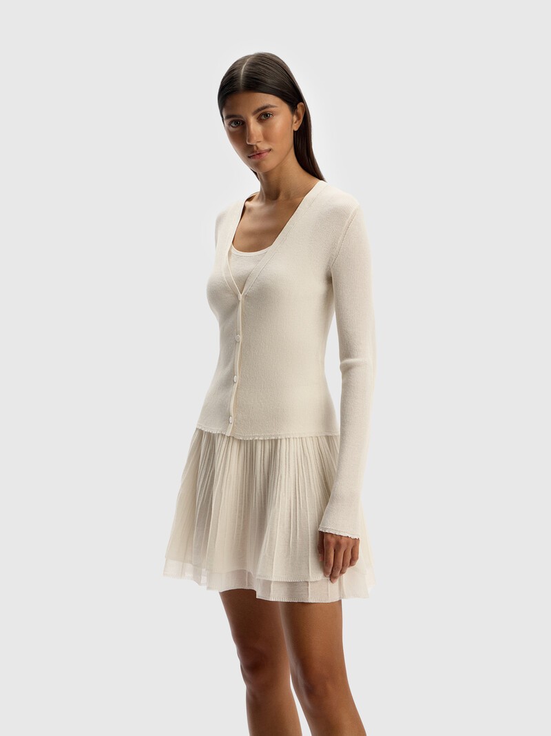 Легкий и аккуратный кардиган с глубоким V-вырезом и длинными узкими рукавами создает подчеркнуто женственный силуэт. Связан рибовым переплетением из шелковистой пряжи на основе вискозы — такая нить не только тонкая и гладкая, но и прохладная. Застегивается на пуговицы из перламутра. Сочетайте с юбкой и топом из нашей коллекции. У этого изделия низкая пиллингуемость. При правильном уходе первые пилли могут появиться на нем в среднем через 10 носок.