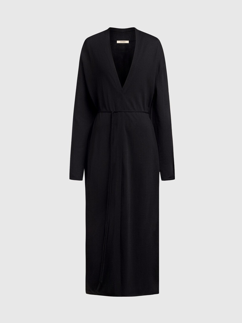 Невесомый длинный кардиган с узким пояском-шнурком — он держится на нитяных шлевках и тоже выглядит легким. Тонкий дышащий трикотаж с деликатным блеском приятно холодит кожу и в движении напоминает шлейф. Носите его с платьем мини или вещами из шелка — смешение разных фактур сделает образ особенно интересным. У этого изделия низкая пиллингуемость. При правильном уходе первые пилли могут появиться на нем в среднем через 10 носок. Сделано в Китае.