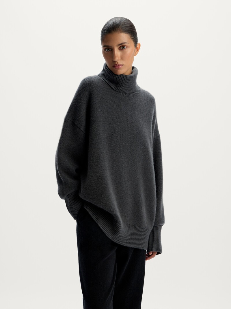 Мягкий и легкий, как облачко, свитер из кашемира. Пух для него очищен вручную — этот этап производства позволяет выбрать самые длинные и шелковистые волокна, плотность которых всего 15,5 микрон. Воздушный кашемир, из которого свитер связан в четыре нити, обладает особыми качествами — такой трикотаж меньше скатывается и прослужит долгие годы. У этого изделия средняя пиллингуемость. При правильном уходе первые пилли могут появиться на нем спустя 4-7 носок. При трении о шершавые поверхности пушистая нить может скатываться — для удаления пиллей воспользуйтесь специальной машинкой. Сделано в Китае.