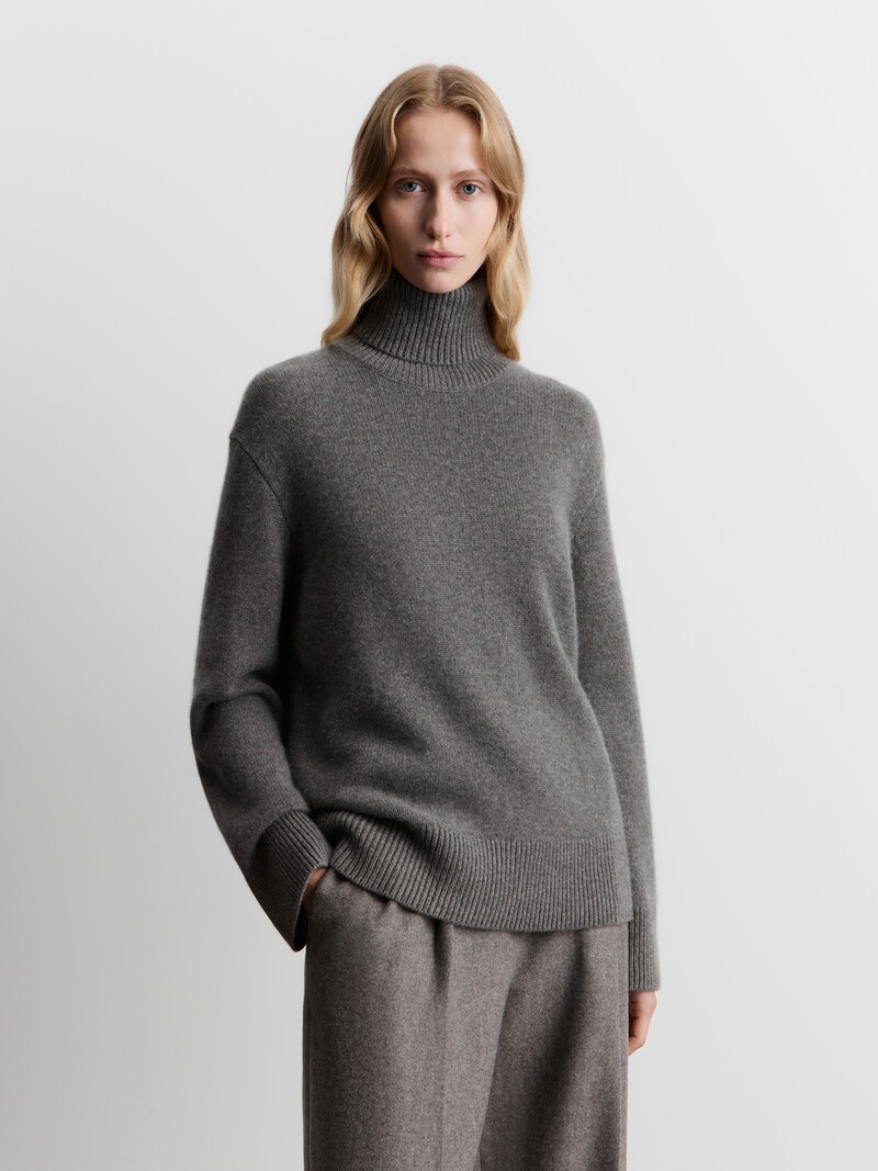 Любимая модель наших покупателей — свитер из плотного кашемира в четыре нити. В этом сезоне мы сделали его немного короче и компактнее, чтобы вам было удобнее носить свитер под верхнюю одежду. Кашемир из Внутренней Монголии — лучший среди аналогов: благодаря тщательной очистке и качеству волокон, его нити мягче, легче, прочнее и меньше подвержены пиллингу. При трении о шероховатые поверхности пушинки кашемира могут скатываться. При правильном уходе первые пилли могут появится на изделии спустя 4-7 носок. Чтобы удалить пилли, пользуйтесь специальной машинкой. Сделано в Китае.