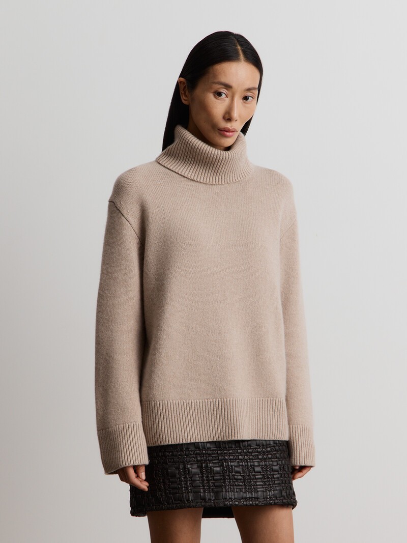 Любимая модель наших покупателей — свитер из плотного кашемира в четыре нити. В этом сезоне мы сделали его немного короче и компактнее, чтобы вам было удобнее носить свитер под верхнюю одежду. Кашемир из Внутренней Монголии — лучший среди аналогов: благодаря тщательной очистке и качеству волокон, его нити мягче, легче, прочнее и меньше подвержены пиллингу. При трении о шероховатые поверхности пушинки кашемира могут скатываться. При правильном уходе первые пилли могут появится на изделии спустя 4-7 носок. Чтобы удалить пилли, пользуйтесь специальной машинкой. Сделано в Китае.
