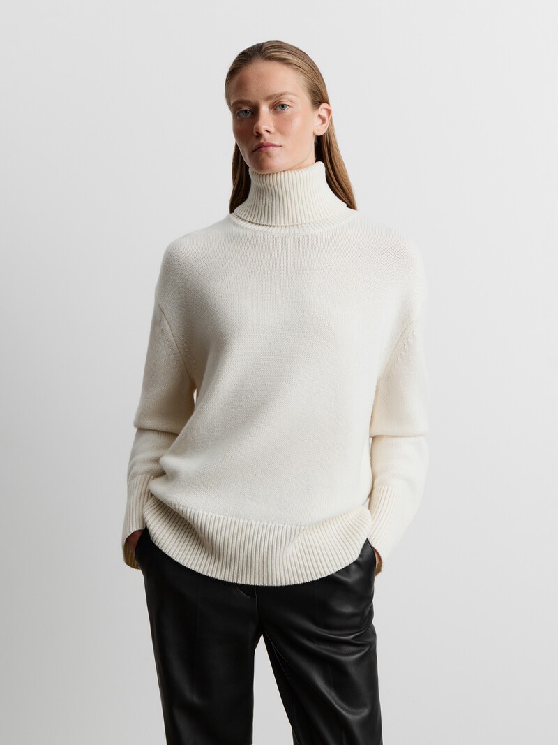 В этом сезоне для любимого свитера мы выбрали новую пряжу — такую же нежную и мягкую смесь шерсть мериноса и кашемира, но в других пропорциях. Связанный в четыре нити, свитер получается плотным, приятно тяжелым и очень теплым. При трении о шероховатые поверхности пушинки кашемира могут скатываться. При правильном уходе первые пилли могут появится на изделии спустя 4-7 носок. Чтобы удалить пилли, пользуйтесь специальной машинкой.