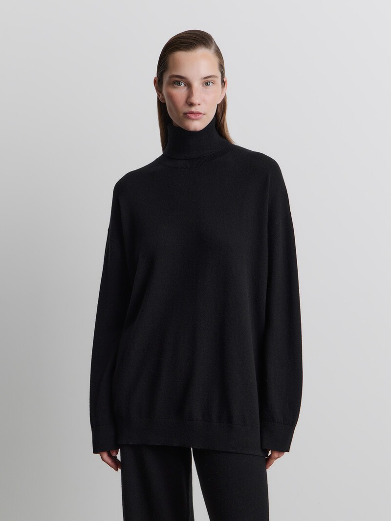 Бестселлер 12 STOREEZ — просторный и слегка удлиненный свитер из нежной смеси мериносовой шерсти и кашемира. Мы связали его в одну нить, чтобы сделать пластичным и тонким: такой свитер легко комбинировать с другими вещами — например, с брюками из нашей коллекции. При трении о шероховатые поверхности пушинки кашемира могут скатываться. При правильном уходе первые пилли могут появится на изделии спустя 4-7 носок. Чтобы удалить пилли, пользуйтесь специальной машинкой. Сделано в Китае.