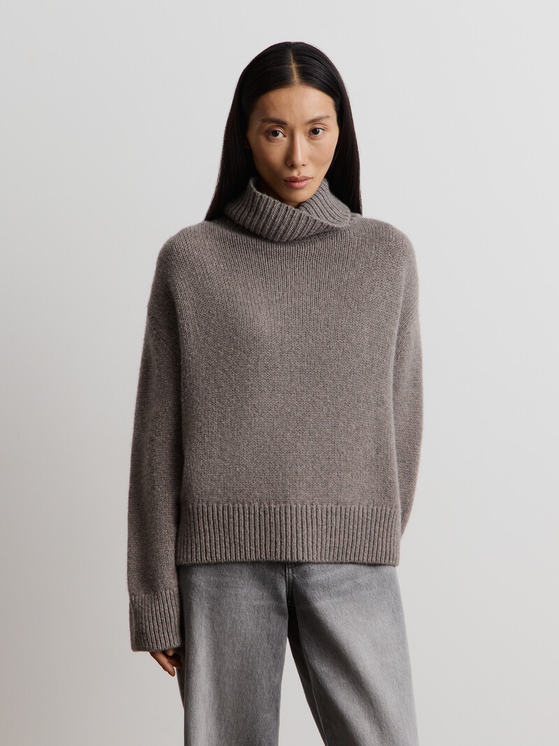 Новинка в нашей коллекции — воздушный и супернежный свитер из кашемира. Мы выбрали для него необычную пряжу: специальные машины сплетают невесомые пушистые нити в объемную косичку, из которой потом вяжется свитер — уютный и теплый. Натуральный оттенок нити близок к природному цвету кашемира и легко вписывается в базовую палитру. При трении о шероховатые поверхности пушинки кашемира могут скатываться. При правильном уходе первые пилли могут появится на изделии спустя 4-7 носок. Чтобы удалить пилли, пользуйтесь специальной машинкой.