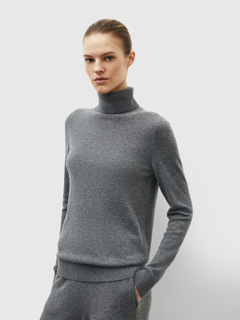 Нежная водолазка из невесомого кашемира достаточно тонкая, чтобы носить ее под пиджак — и в то же время свободная, чтобы вам было уютно. Легкая пряжа из вычесанного вручную пуха горных коз согревает лучше овечьей шерсти и совсем не колется. Такой трикотаж хорошо держит форму — даже связанный в одну нить, он остается плотным и пластичным. У этого изделия средняя пиллингуемость. При правильном уходе первые пилли могут появиться на нем спустя 4-7 носок. Мы оставили нить пушистой и сохранили ее природную мягкость, поэтому при трении о шершавые поверхности могут образовываться пилли. Вы легко избавитесь от них с помощью специальной машинки.