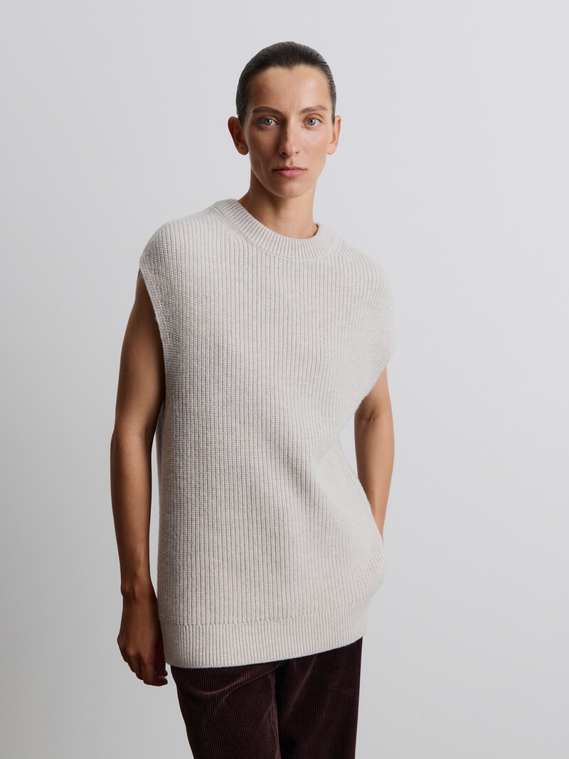 Лаконичный свободный топ — мягкий, легкий и очень теплый. Носите его поверх водолазки или лонгслива или надевайте под пальто или тренч как дополнительный согревающий слой. Связан из шерсти австралийского мериноса, которая особенно ценится за свои качества — она прекрасно дышит, придает трикотажу гладкость и совсем не колется. Сделано в Китае.