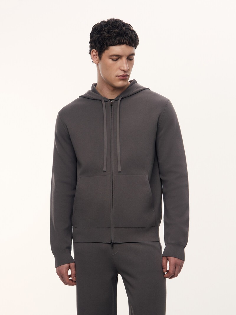 1. Гладкая и мягкая пряжа на основе вискозы и полиамида — приятно касается кожи и слегка охлаждает 2. Держит форму и не вытягивается: двойное переплетение делает трикотаж плотным и устойчивым 3. Молния Easy Close с двумя замками: бегунок сам подхватывает нижнюю деталь, поэтому худи легко застегнуть одной рукой