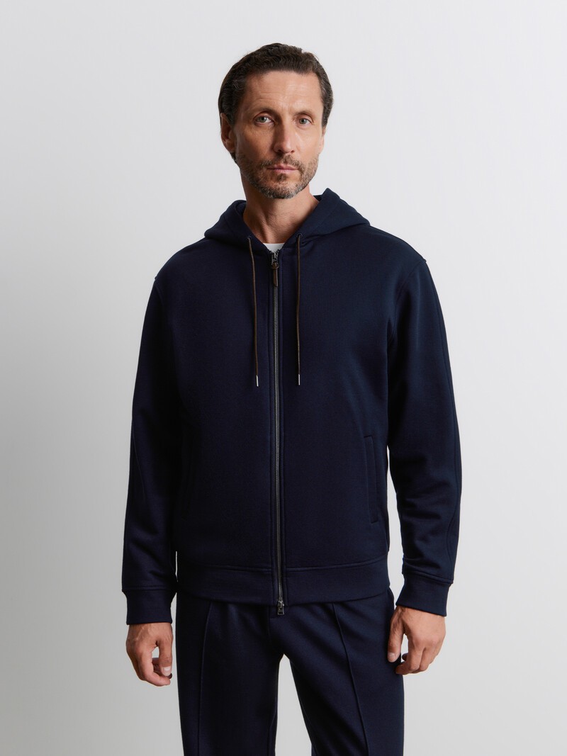 Теплая толстовка из мягкой смеси шерсти и хлопка с небольшим начесом. Застегивается на металлическую молнию и дополнена элементами из замши — они придают толстовке более универсальный вид. Сочетайте ее с брюками из нашей коллекции или с джинсами — образ получится расслабленным и уютным. Сделано в Китае.