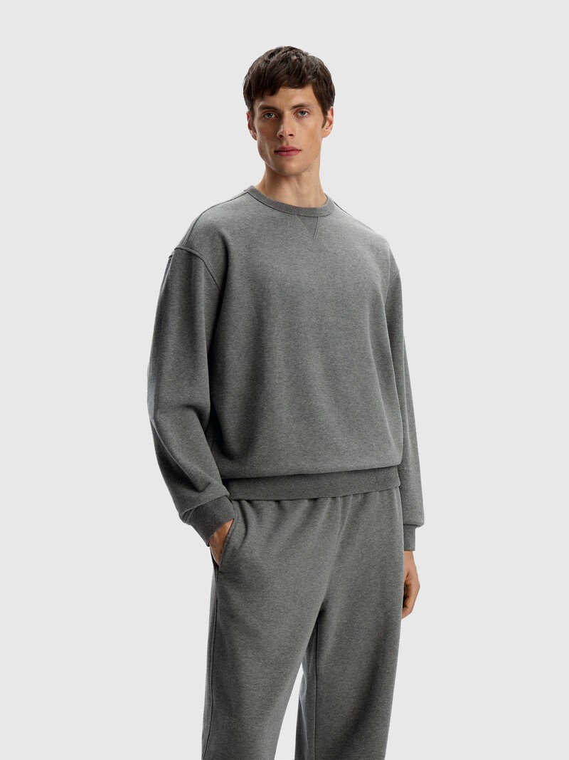 Уютная базовая толстовка — свободная, с маленьким нашитым треугольником около выреза. По нижнему краю — аккуратно вышитый нитями в тон логотип 12 STOREEZ. Выполнена из плотного легкого футера с меланжевой текстурой и мягкими петельками на изнанке. Искусственные волокна в составе материала помогают ему хорошо держать форму, создавать объем и оставаться пластичным. Сделано в Китае.